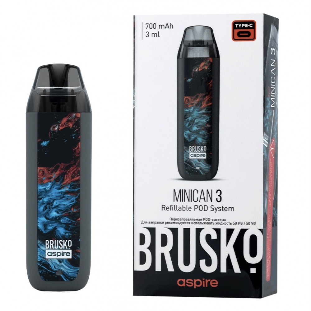 Перезаправляемая Под-Система Бруско Миникан 3 (Brusko Minican 3) 700 mah, Серый Флюид - купить в Междуреченске